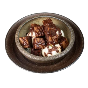 A fusion dessert combining fudgy brownie with the nutty, syrup-soaked goodness of kunafa and pistachio.