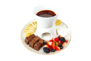 A warm pot of rich melted chocolate served with an assortment of dippables. The ultimate shareable dessert experience.