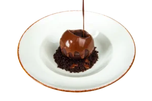 A stunning chocolate sphere that melts away to reveal a hidden dessert inside. Equal parts theatrical and delicious.