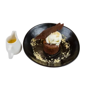 A warm chocolate cake with a gooey molten center that flows with every spoonful. Decadent and irresistibly indulgent.